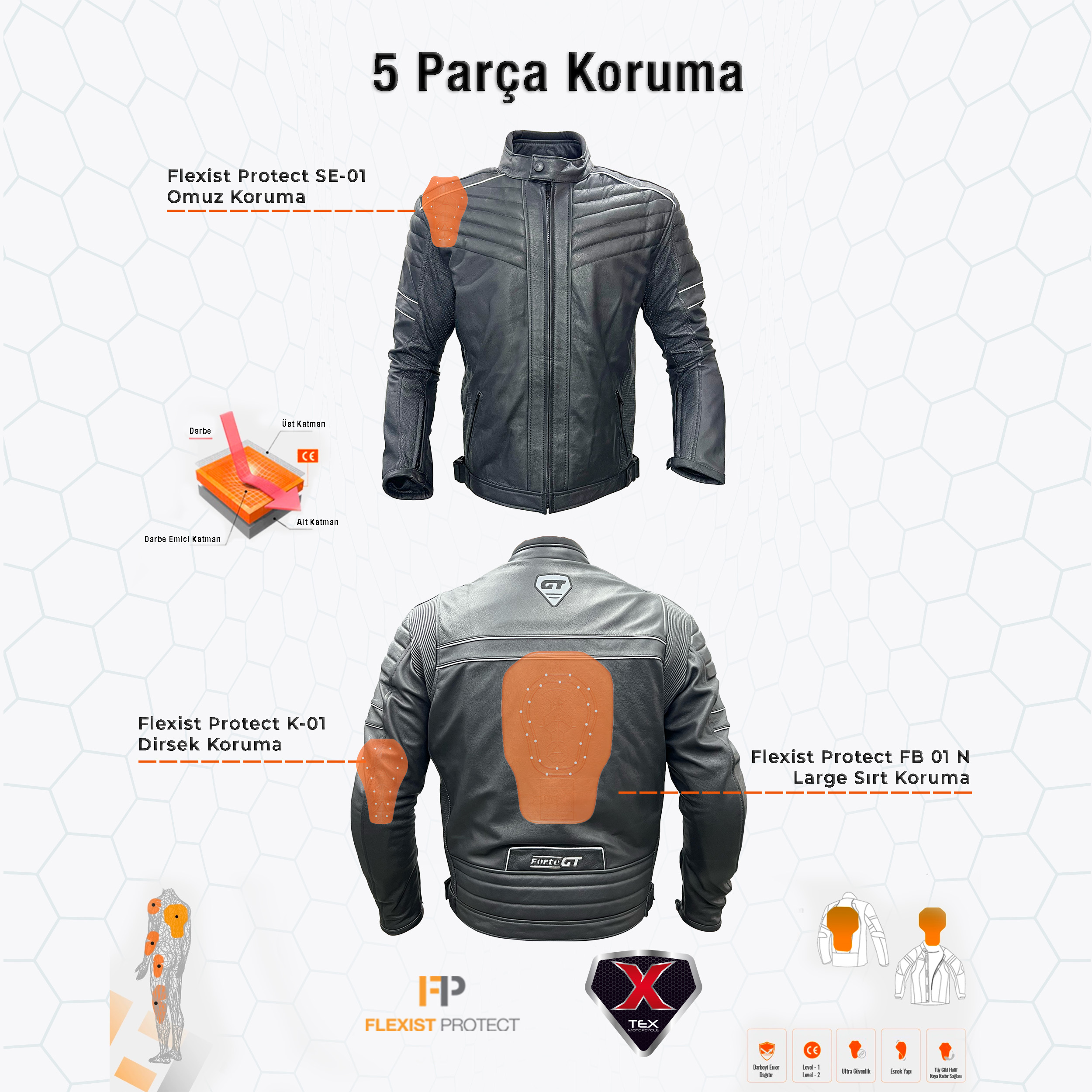 FORTE GT 2002001 BUFFALO, adını aldığı buffalo gücünü tasarımına ve yapısına yansıtan, dayanıklılık ve yüksek koruma odaklı geliştirilmiş premium bir sürüş montudur. Güçlü ve maskülen tasarım çizgileri, şehir içi sürüşlerde olduğu kadar uzun yolculuklarda da sürücülere kararlı ve dikkat çekici bir görünüm sunar. Ergonomik kesimi ve modern yapısıyla hem tarz hem performans isteyen motosiklet kullanıcıları için ideal bir modeldir.